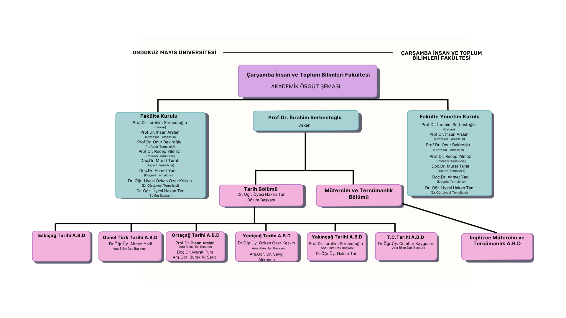 Çarşamba Faculty of Humanities and Social Sciences Department of History was established in 2018 and started education in 2019 with a quota of 40 students. Our department has six programmes: Ancient History, Medieval History, General Turkish History, Modern History, Contemporary History and History of the Republic of Turkey.